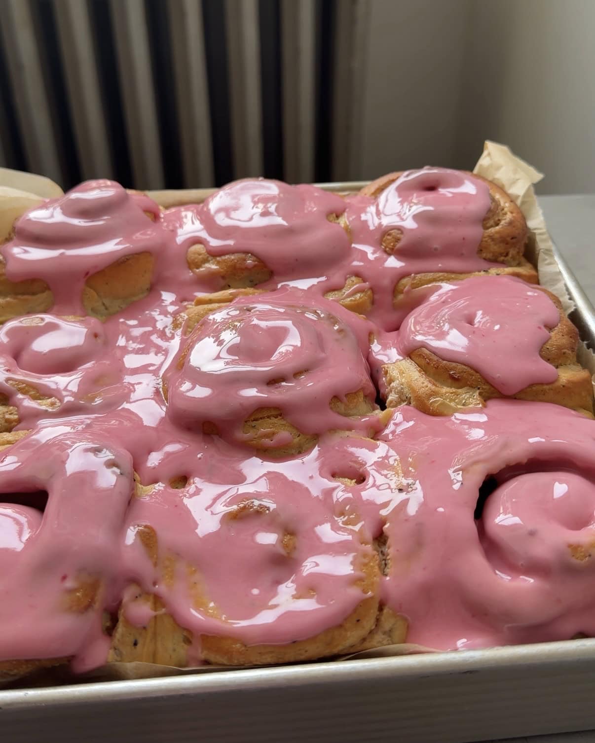 Fluffy orange cardamom brioche dough, a simple orange cream cheese filling, topped with a blood orange glaze, these Cardamom Blood Orange Buns are fluffy and perfect for breakfast.