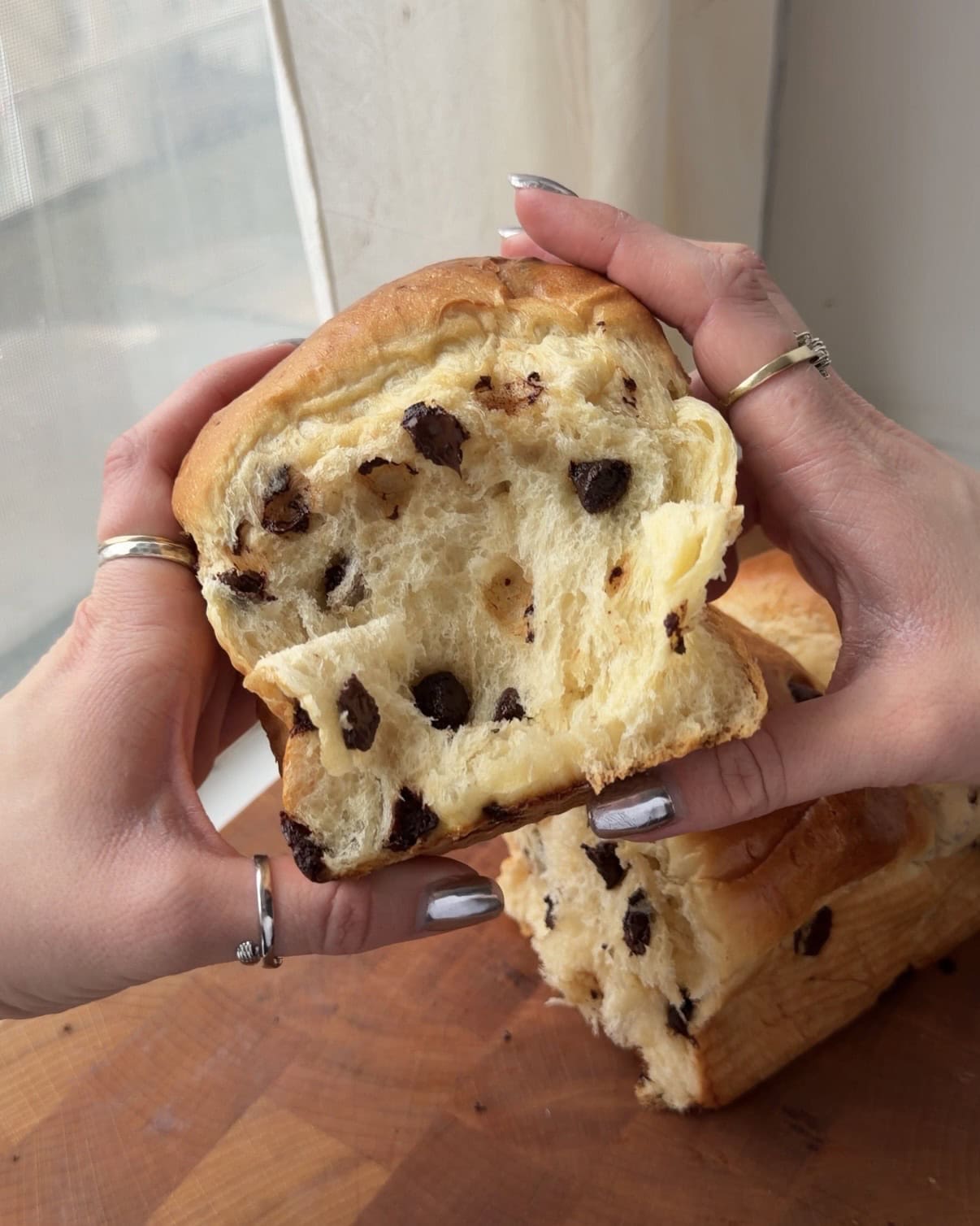 Light and fluffy brioche filled with chocolate chips, this Chocolate Chip brioche is perfect for snacking, breakfast, or turning the leftovers into french toast!
